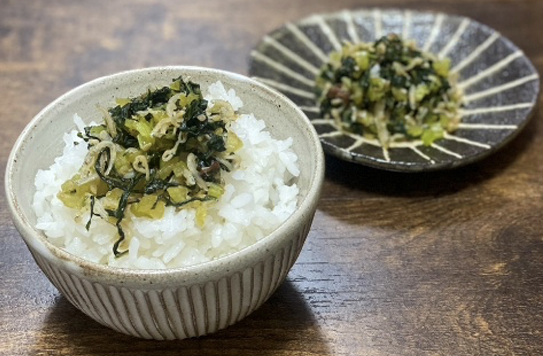 作り方はシンプルで細かく刻んだ葉をごま・かつお節・ちりめんじゃこと一緒に炒め、しょうゆや砂糖で味を調えるだけ。