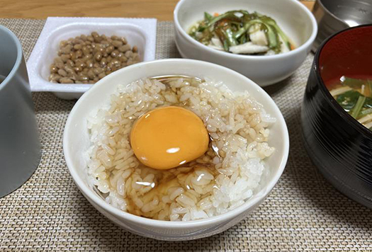 シンプルですが、お米の甘みと卵のコクがよく合い、1日の良いスタートになります。